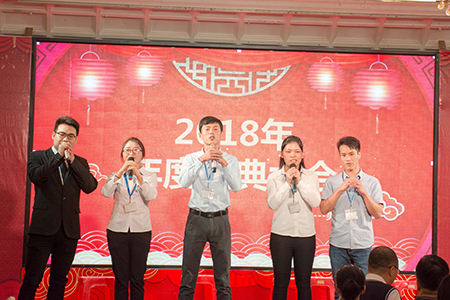 隨著陳董事長的開幕致詞,精彩的節(jié)目正式拉開帷幕!美松各部門都分別準備了精彩的節(jié)目,首先是研發(fā)部門帶來的勁爆舞蹈,在過去的一年中,研發(fā)部門發(fā)揮著企業(yè)發(fā)展創(chuàng)新的關(guān)鍵作用,在舞臺上同樣給大家?guī)矶恳恍碌母杏X。資材部門的《公司明天會更好》,他們用朗朗上口的三句半道出企業(yè)歷年來發(fā)展歷程以及公司未來發(fā)展的美好期盼。期間不乏一些平日里的隱藏高手,組裝部的《廣東愛情故事》《成都》,二曲唱完,余音繞梁,不愧為美松歌神。精彩輪番上演,掌聲根本停不下來! 內(nèi)容百花齊放,笑點不斷,掌聲四起,把年度盛典火熱的氣氛渲染的更加濃烈!