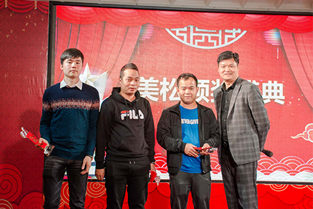 接下來是第二個頒獎環(huán)節(jié),我們一起見證美松人的成就!董事長陳斌先生親自為年度優(yōu)秀員工,最佳進步,突出貢獻獎: 彭晟、陳世波、陳金飛、張玉秀、肖貴云、杜運霞一一頒獎,他們都是用自己的忠誠、勤勞、實力,完美的詮釋了工作是需要用生命和青春去做的事,盡職盡責,敢于突破、敢于創(chuàng)新、敢于挑戰(zhàn)自己,為明天不斷提升自我,堅定不移。他們在平凡的崗位締造著不平凡的人生,他們用行動詮釋著美松的“專業(yè)創(chuàng)新誠信服務(wù)”的精隋,此處給予熱烈的掌聲!