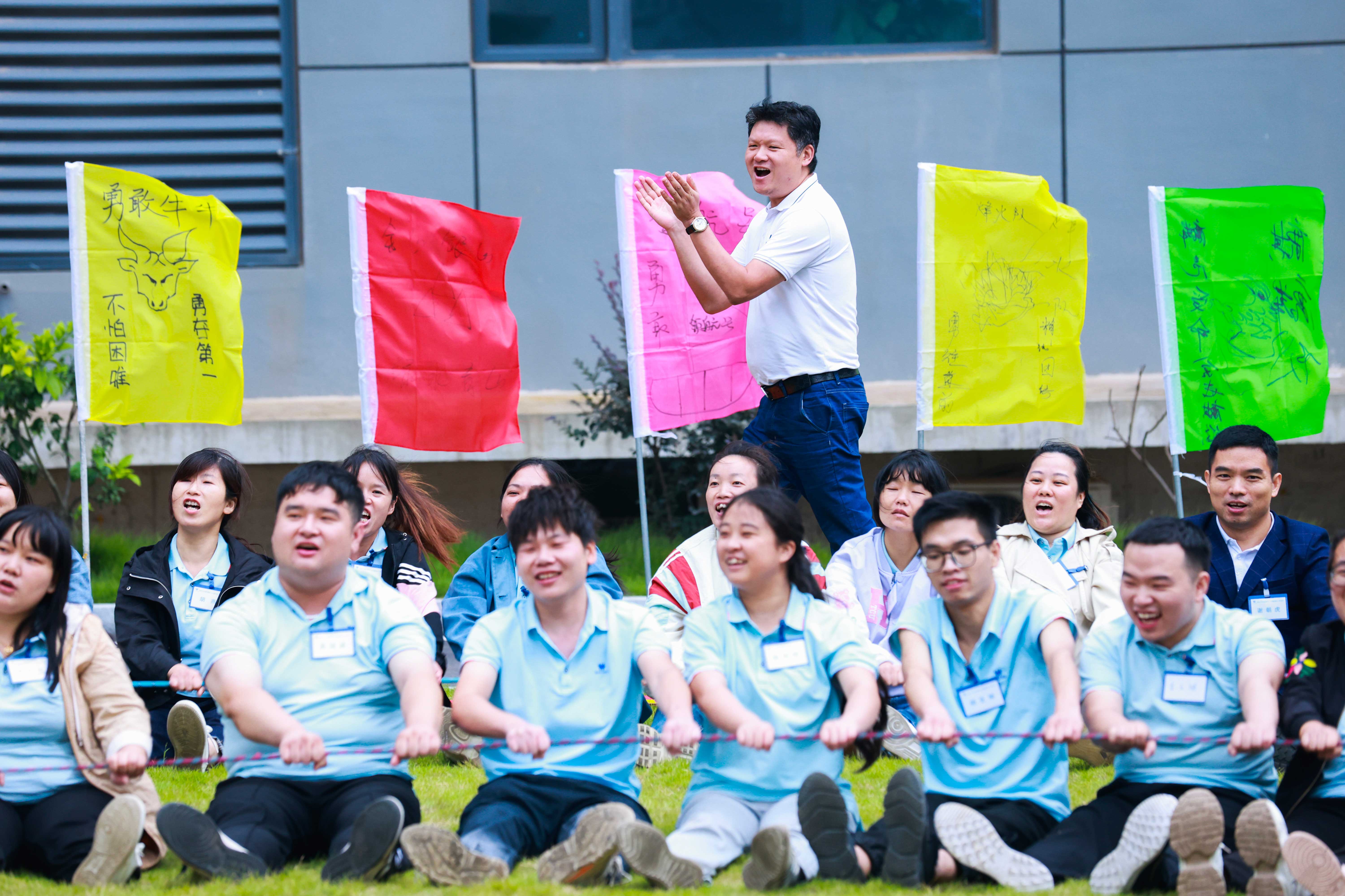 “能量動(dòng)力圈”項(xiàng)目將活動(dòng)推向高潮,大家激情澎湃,斗志昂揚(yáng),16支隊(duì)伍200余人緊緊的聚攏圍圈在一起,緊握首尾相連的繩子并用力拉緊保持圓形,按教練的要求整齊劃一地?fù)u圈若干次,挑戰(zhàn)每個(gè)人的極限,從開(kāi)始不及格的100個(gè)到成功挑戰(zhàn)666個(gè)的卓越表現(xiàn),讓我們看到了團(tuán)隊(duì)的震撼與力量。我們都知道螞蟻可以負(fù)重三十幾倍的自身重量,而我每個(gè)成員就像一只只螞蟻一樣充滿了無(wú)限的力量和潛能,當(dāng)我們每位員工在前方?jīng)_鋒陷陣的時(shí)候,背后都有一個(gè)強(qiáng)大的團(tuán)隊(duì)為他分擔(dān)重量。熔煉團(tuán)隊(duì)的過(guò)程,不僅提高了我們團(tuán)隊(duì)的凝聚力、向心力、責(zé)任感、100%執(zhí)行力,而且還增加我們所有員工之間的信任感與相互理解包容,團(tuán)隊(duì)與團(tuán)隊(duì)之間的互相協(xié)作精神也得到了升華。克服人性弱點(diǎn),決不放棄直到成功為止,為團(tuán)隊(duì)共同目標(biāo)的實(shí)現(xiàn)而努力奮斗!這過(guò)程更是感動(dòng)的不僅是我們團(tuán)隊(duì)的每一位成員,更有場(chǎng)外的董事長(zhǎng)陳斌先生,也親臨現(xiàn)場(chǎng)為我們的所有團(tuán)隊(duì)助陣吶喊鼓掌!