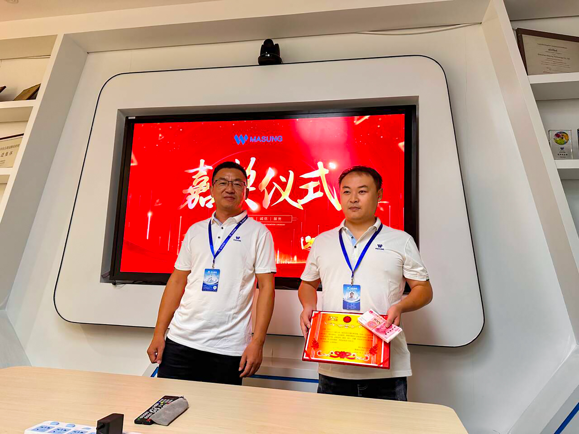 最后,董事長陳斌先生也作了發(fā)言并寄予大家厚望。他說:在充滿競爭與挑戰(zhàn)的商業(yè)世界里,唯有不斷突破自我、勇于創(chuàng)新,才能掌握未來的主動權。在這段時間里看到,鄧敏表現(xiàn)出極強的積極性和責任感。他不斷學習行業(yè)知識、市場動態(tài),提升自身素質,用充滿激情的工作態(tài)度影響著團隊的每一位成員。面對困難和挫折,他堅持不懈,迎難而上,用刻苦勤懇的精神感染我們身邊的每一個人。正是這份不畏艱難、勇于創(chuàng)新的精神,為他贏得了客戶的信任,也為公司贏得了實實在在的業(yè)績。希望全體銷售人以他為榜樣,在工作中保持學習熱情,勇于迎接挑戰(zhàn),加大拓展新行業(yè)新領域,共同推動公司的發(fā)展,也能創(chuàng)造更高的個人收益!陳董還表示,希望所有銷售人走出去,代表美松代表美松能量,讓美松品牌masung、美松價值、美松平臺擁有的硬件+軟件+耗材服務、美松技術研發(fā)專精能力、美松打印機掃描儀產品、美松定位不僅小票據打印掃描外還有熱轉印大打印、美松規(guī)模實力等附加價值,傳遞出去,能為客戶創(chuàng)造更多的價值,與客戶共同發(fā)展。
