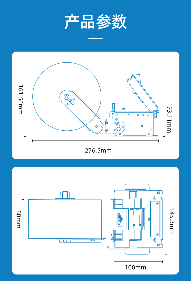 嵌入式打印機(jī)介紹:這款嵌入式打印機(jī)是80mm熱敏打印機(jī),可打印82.5mm寬的熱敏紙,熱敏紙支架可圍繞打印機(jī)上下旋轉(zhuǎn)180°,高速打印,支持標(biāo)簽打印,黑標(biāo)打印和熱敏紙打印,配有專(zhuān)利技術(shù)防堵防拽出紙嘴,減輕出紙不順暢的問(wèn)題,提高用戶體驗(yàn),減輕維護(hù)成本。