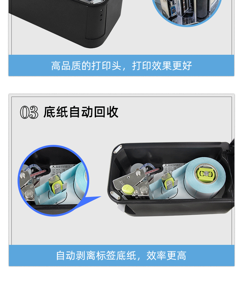標(biāo)簽打印一體機(jī) 45°角斜出紙 回收底紙裝置 為零售新零售等行業(yè)提供解決方案.