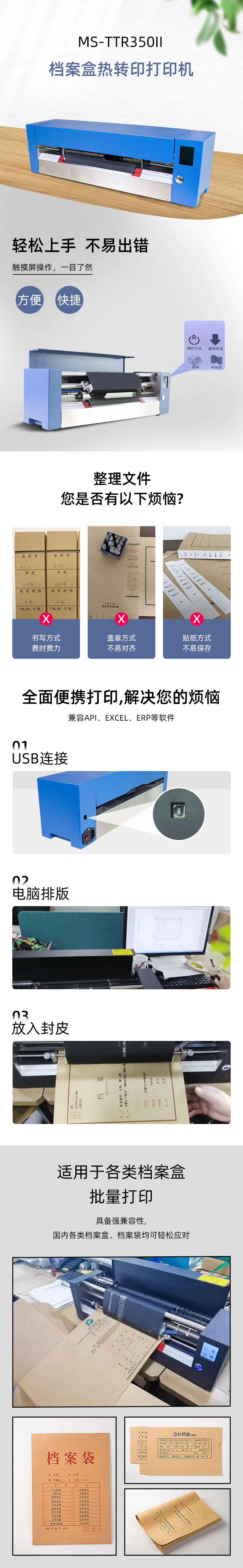 美松MASUNG自主研發(fā)A3+標(biāo)準(zhǔn)檔案盒封面打印機 1.專業(yè)打印牛皮紙,證件內(nèi)頁,無酸紙檔案盒 2.對接API,EXCEL,ERP等數(shù)據(jù)庫專業(yè)的編輯軟件,自定義打印 3.USB連接操作簡單,耗材成本低,長久保存 4.智能打印,整齊規(guī)范化,助力智慧辦公