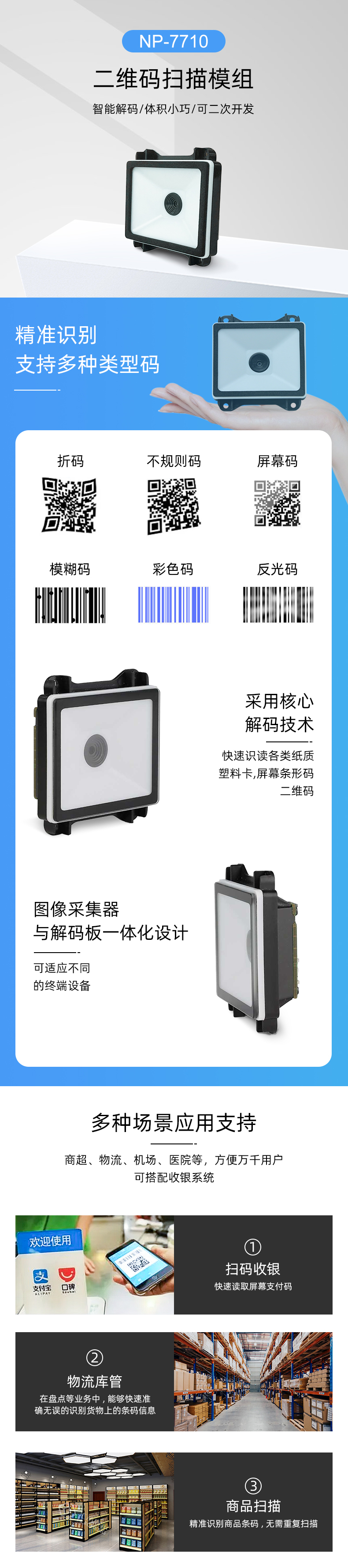 快速識別紙質(zhì)和屏幕條碼 高兼容性的傳輸接口,適配更多設備,數(shù)據(jù)傳輸更加安全可靠 接口豐富,內(nèi)置RS232、USB、TTL5V、TTL3.3V 高集成度,21mm厚小機身,非常方便的用于高度集成應用環(huán)境