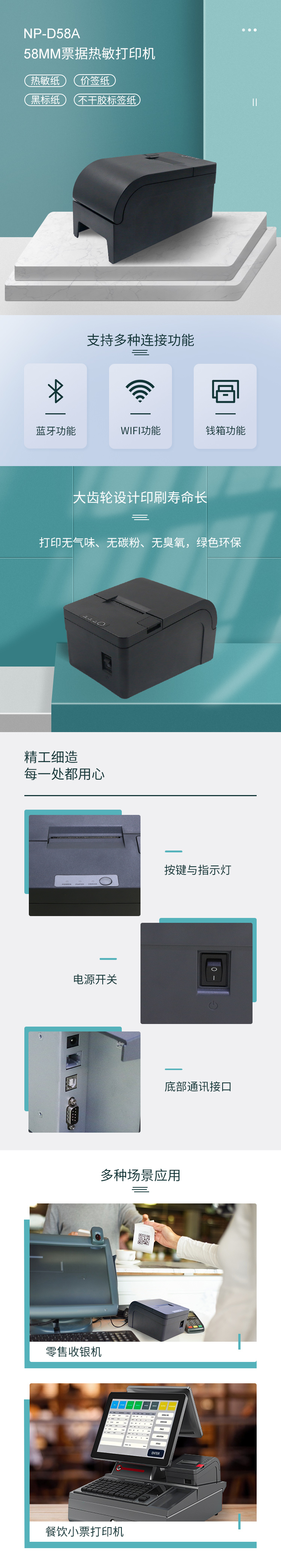 1.易裝紙,手撕切紙 2.大齒輪設(shè)計打印壽命長 3.支持價簽紙,熱敏紙,黑標(biāo)紙,不干膠標(biāo)簽紙打印功能 4.小巧機身,適用于狹窄的柜臺空間 5.人性化設(shè)計,紙倉開啟角度寬,裝紙維護(hù)便捷