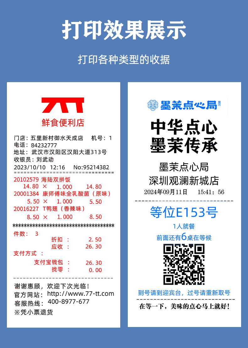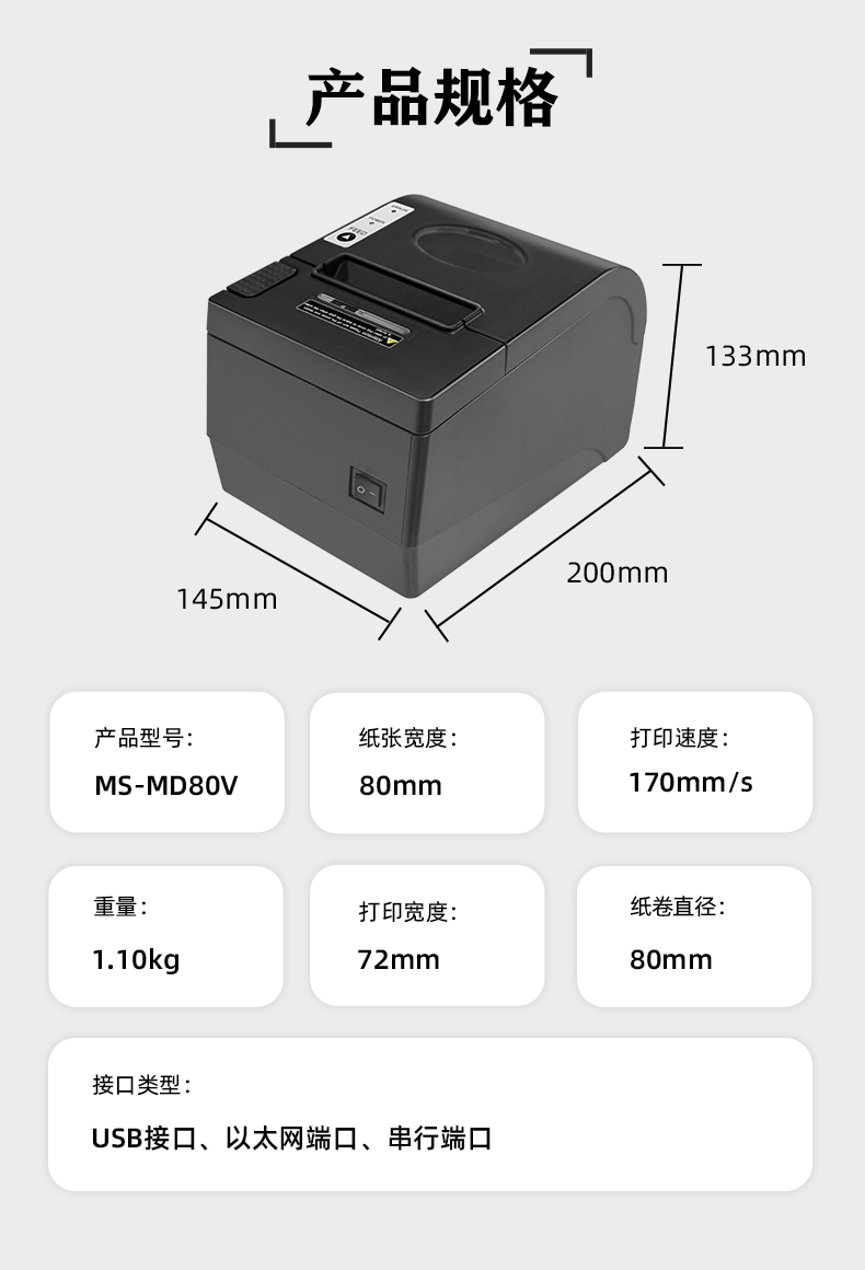 80mm小票打印機 熱敏后廚房前臺收銀餐飲打印機,支持前臺收銀與后廚菜單打印、打印機帶切刀自動切紙、USB/網(wǎng)口可供選擇。在零售、餐飲、服裝、寵物、烘焙、母嬰等行業(yè)擔(dān)任前臺收銀、后廚打印、點餐系統(tǒng)、銷售單據(jù),準備配貨、手機支付等功能的應(yīng)用。