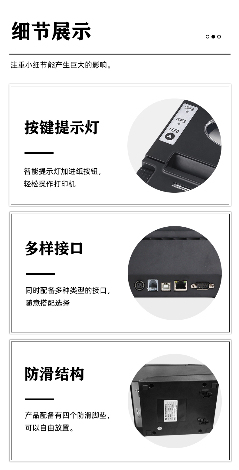 5.精工打印頭,快速清晰,定期用工業(yè)酒精擦拭,可延長打印頭壽命