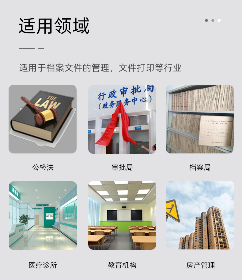 熱轉(zhuǎn)印打印機適用范圍:適用于公檢法,檔案局,審批局,醫(yī)療診所,教育機構(gòu),煙草,房產(chǎn)管理,電力,鐵路等行業(yè).