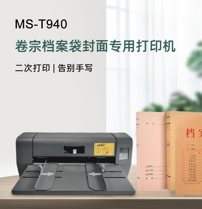 美松MS-T940熱轉(zhuǎn)印檔案袋封面打印機,為牛皮紙,不動產(chǎn)等證件內(nèi)頁,無酸紙檔案盒、檔案袋特種行業(yè)提供智能打印方案,且永久保存,適用于檔案館、公檢法司部門、教育事業(yè)單位、工商稅務(wù)局、金融機構(gòu)等行業(yè)的檔案管理的工作,實現(xiàn)高效規(guī)范的科學(xué)檔案管理。