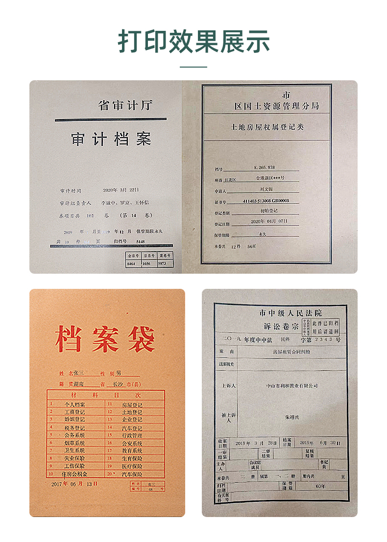 1.專業(yè)打印牛皮紙,不動產(chǎn)等證件內(nèi)頁,無酸紙檔案盒