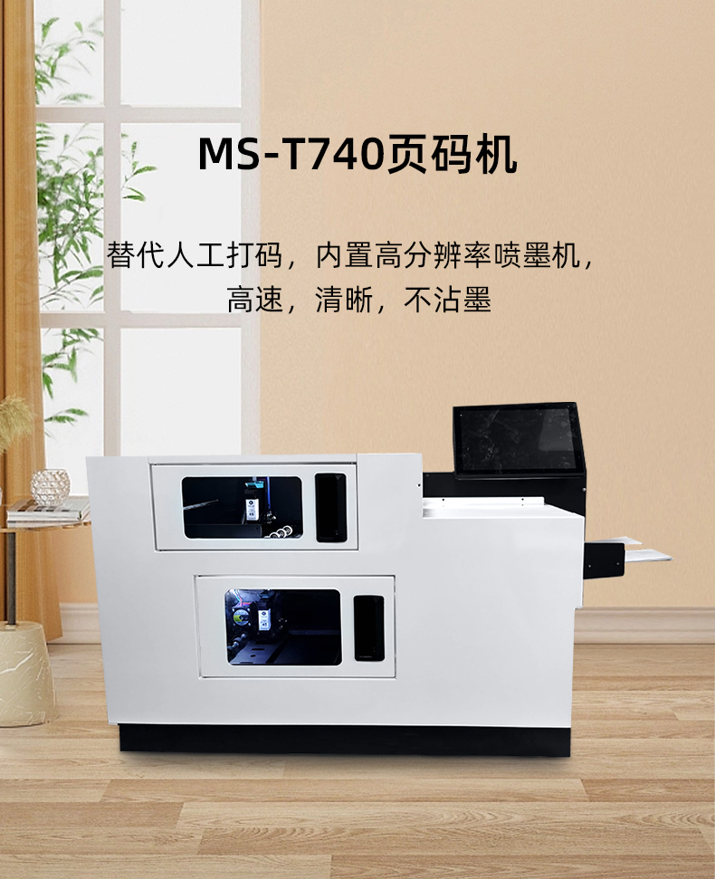 MS-T740頁碼機(jī) 替代人工打碼,內(nèi)置高分辨率噴墨機(jī),高速,清晰,不沾墨 可觸屏的電腦具有高速處理器,DDR3L 8GB內(nèi)存、SSD128G硬盤、電容式高亮觸摸屏、預(yù)留網(wǎng)口、USB、COM口等 光盤存儲刻錄專業(yè)處理軟件 處理過的文件通過內(nèi)置軟件可輕松制成光盤或存儲至指定位置。 Ai智能識別