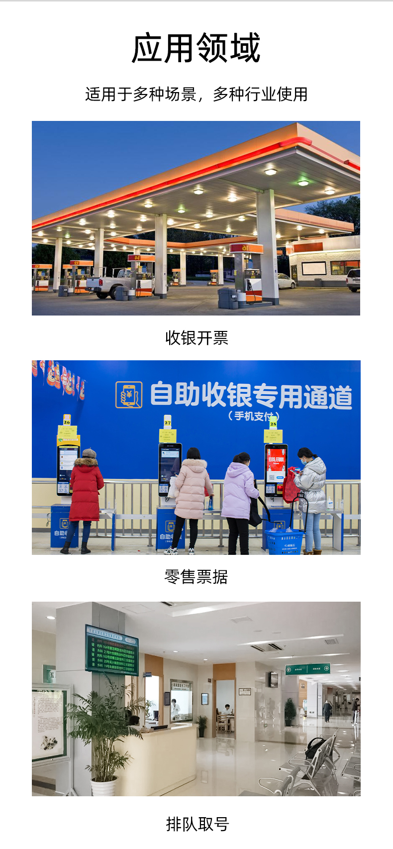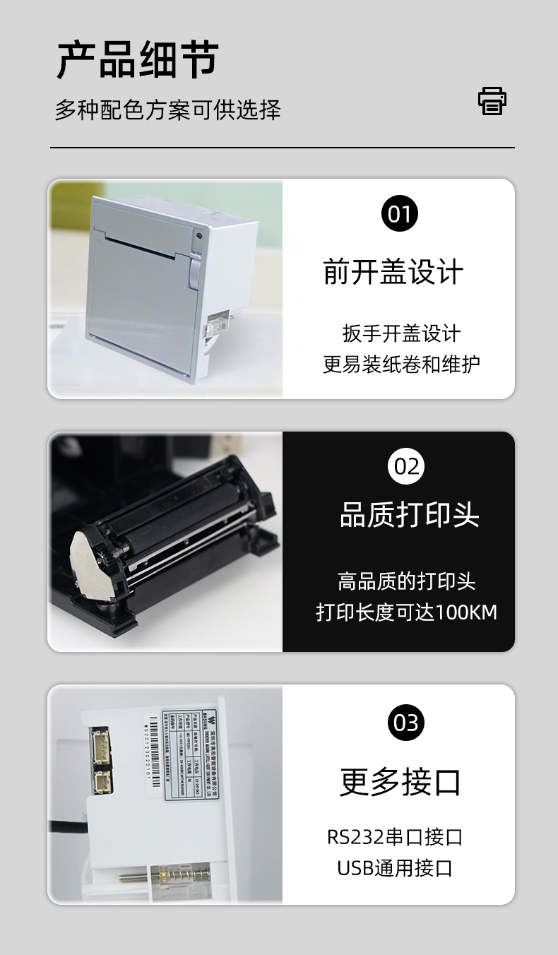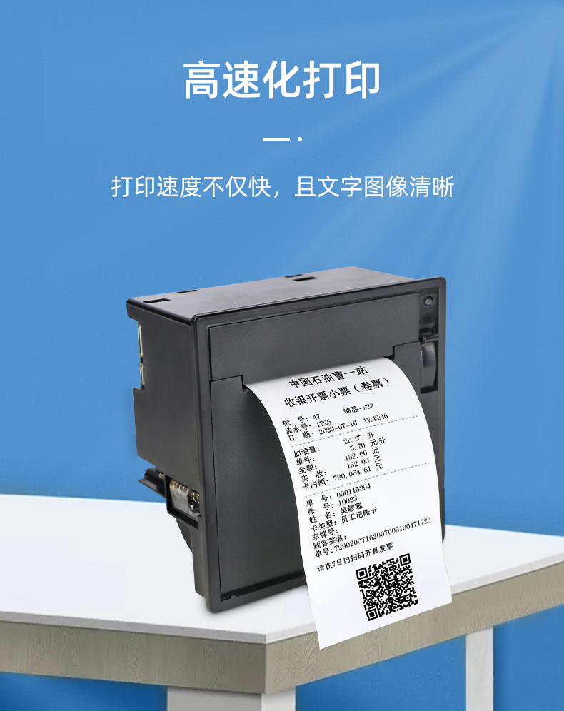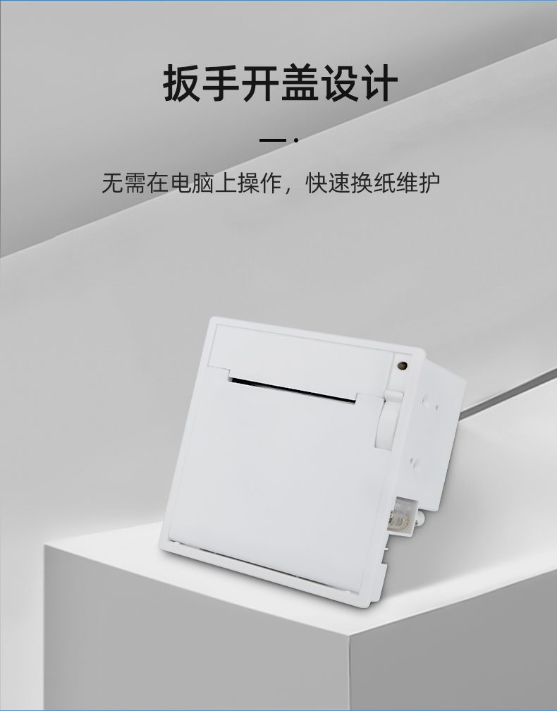1.大紙倉設計,拒絕頻繁換紙; 2.更快打印速度,提高工作效率; 3.易裝紙設計,扳手或者鑰匙開蓋,放入小票紙,關上機蓋就可使用 4.自動切紙,無人值守嵌入式打印機 5.自動切紙,可調(diào)節(jié)全自動切紙、半自動切紙,半自動切紙切完中間會留一點,輕輕一扯就好,無需手動撕紙,以免造成卡紙; 6.一鍵開蓋裝紙換紙,無需打開機柜就可輕松實現(xiàn)裝紙和換紙,簡單方便。
