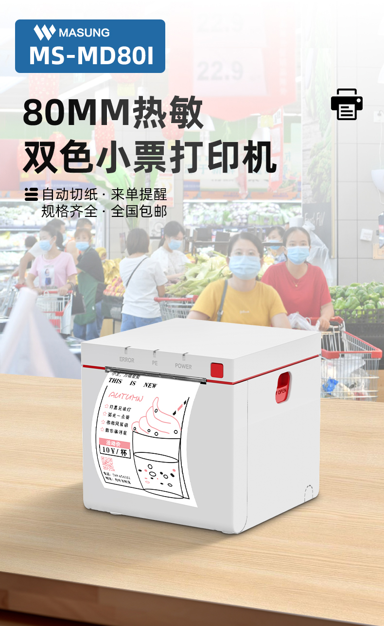MD80I是一款高顏值的可桌面也可壁掛的雙色熱敏票據(jù)打印機。MD80I外形四四方方的,圓潤一體設(shè)計、簡于外,精于內(nèi)。適用于零售商超、中小電商、倉儲物管、影院娛樂等行業(yè)領(lǐng)域,更適合新零售、跨境電商、影院行業(yè)