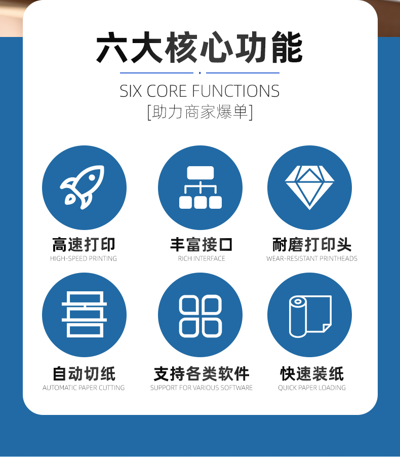 MD80I是一款高顏值的可桌面也可壁掛的票據(jù)打印機。MD80I外形四四方方的,圓潤一體設(shè)計、簡于外,精于內(nèi)。流線造型,外觀簡潔大方。顏色搭配顯得更加干凈整潔,可內(nèi)嵌于一些自助ai設(shè)備上,也可直接進行使用。MS-MD80I是一款全能的桌面式壁掛式票據(jù)打印機,適用于零售商超、中小電商、倉儲物管、影院娛樂等行業(yè)領(lǐng)域,支持簡體/繁體、英/日/韓文多種國際語言,新零售、跨境電商、影院更適合。MS-MD80I擁有超高速打印速度,采用高級強勁機芯,打印速度可高達(dá)250MM/S成為市面上同類產(chǎn)品中快速打印的佼佼者,清晰穩(wěn)定與高速皆可兼得帶來顧客滿分體驗。MS-MD80I擁有豐富的可選接口,支持RS232串口、USB、網(wǎng)口,可選配藍(lán)牙、WiFi等接口、同時支持24V錢箱接入、滿足不同的連接需求。專業(yè)黑標(biāo)定位功能,前出紙打印,無線連接,藍(lán)牙接口連接,WiFi接口連接,USB連接,打印機外殼材質(zhì)高端,內(nèi)置機芯打印速度快。