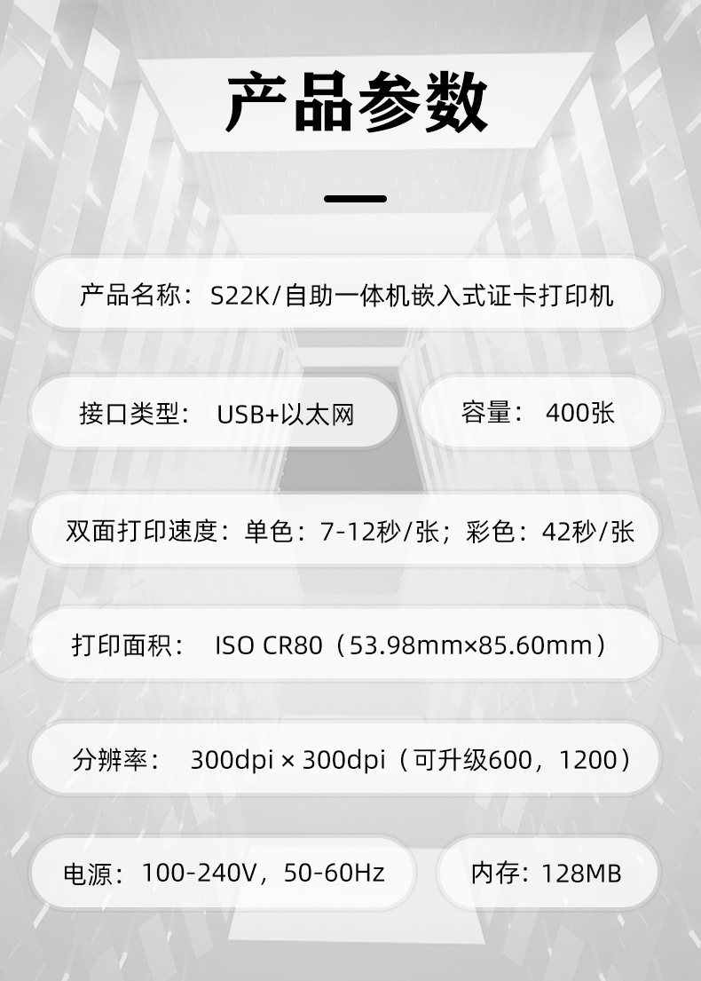 MS-S22K_雙面ID卡證卡打印機(jī)體型輕巧,證卡打印可靠簡單采用高解析度熱升華彩色打印技術(shù)更好的卡片連續(xù)印刷能力,省時(shí)省力操作界面設(shè)計(jì)直觀,輕松上手體型輕巧,維護(hù)方便打印過程噪音低高打印速度引擎 多功能選配模塊,支持各種卡片印刷雙界面芯片卡讀寫模塊非接觸式ID卡讀寫模塊UHF芯片卡讀寫模塊 磁條卡讀寫模塊產(chǎn)品特點(diǎn)機(jī)器小巧輕便單面打印高清彩色打印手動(dòng)單張進(jìn)卡自動(dòng)批量進(jìn)卡