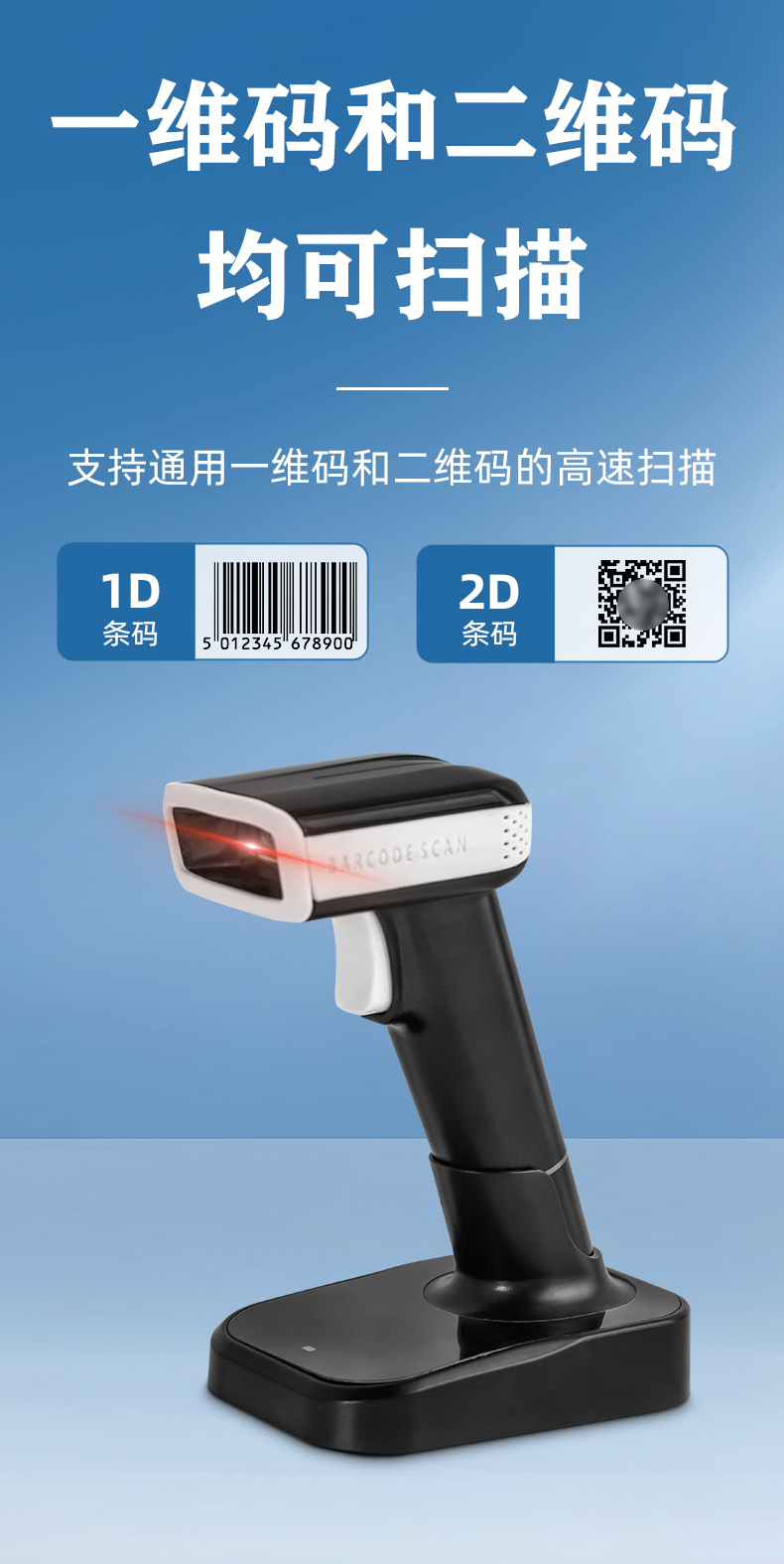 采用高速曝光算法,兼容手機碼和紙質碼的